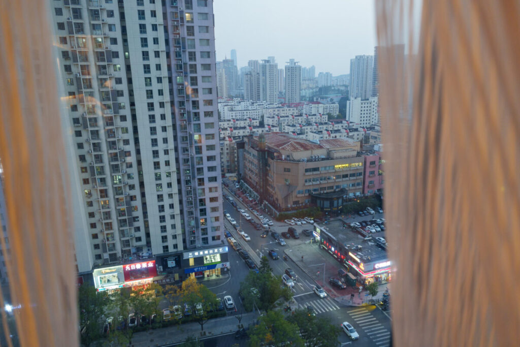 万城広場(World Plaza)に到着しました。Le Meridien Qingdao(ルメリディアン 青島)は、もうすぐです。