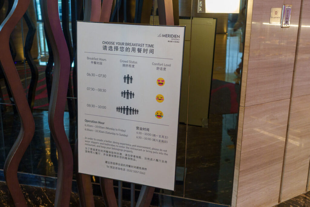 Le Meridien Qingdao(ルメリディアン 青島)の29階には、クラブラウンジがあります。クラブラウンジアクセス権のある宿泊者とプラチナエリート会員以上だけが利用出来ます。利用は、無料です。
