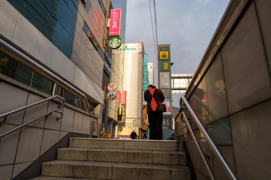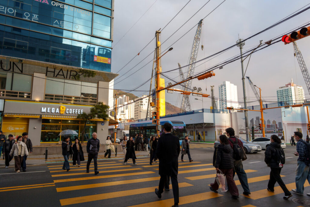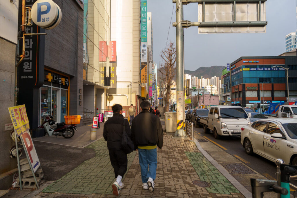 この信号の左手には、釜山名物「ミルミョン(冷麺)」の名店があります。別記事で紹介しています。