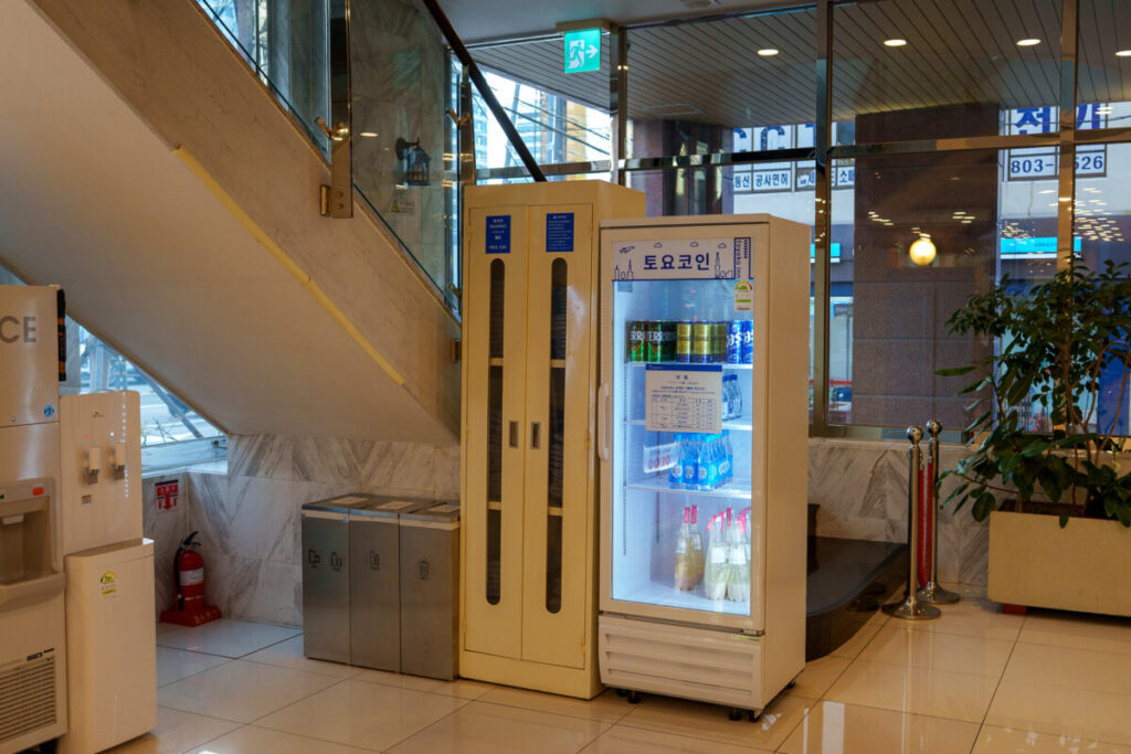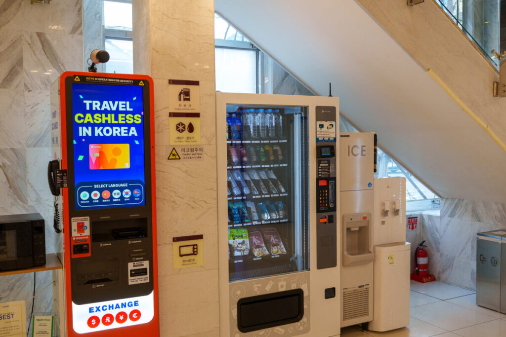 1階には、WOWPASS(ワオパス)発券機があります。WOWPASS(ワオパス)とは、日本で言えばSuicaの様なカード。飲食店やコンビニ、交通機関で現金要らずで決済できます。この発券機は両替も出来るので便利です。