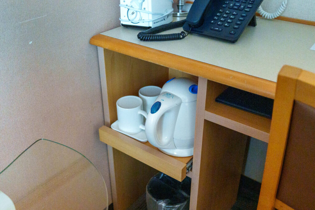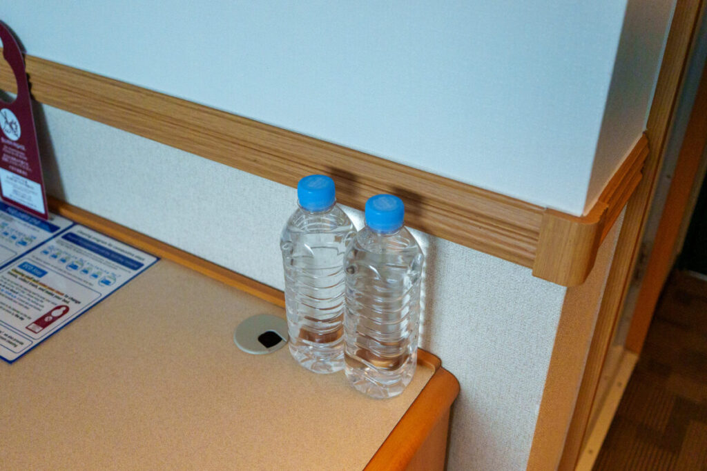 無料の水が、2本あります。連泊時、毎日2本の補充があります。