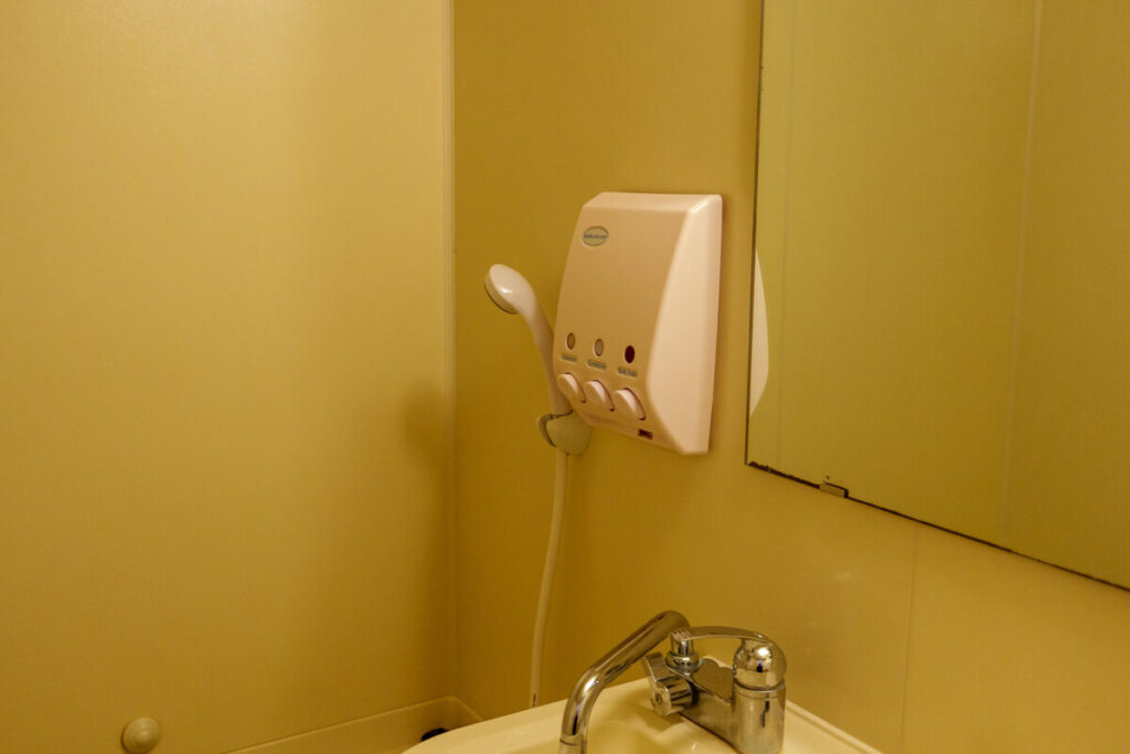 シャンプー、コンディショナー、ボディソープが設置されています。