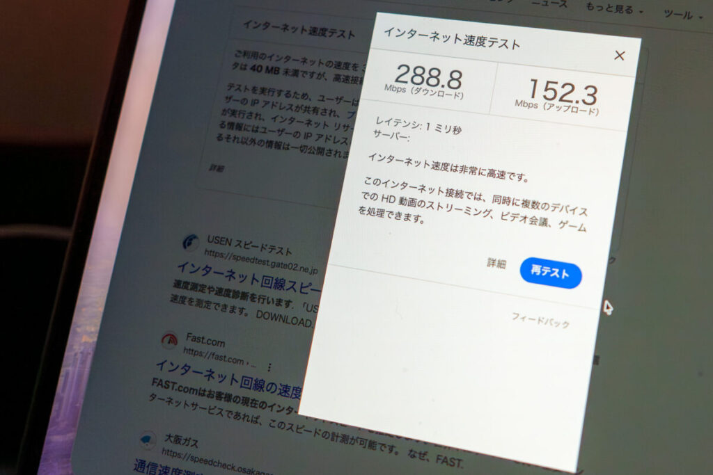 Wi-Fiは、爆速でした。