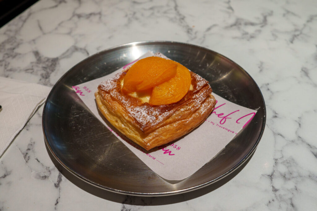 黄桃とカスタードクリームを使ったデザート系デニッシュです。