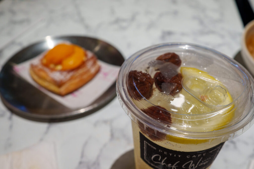 アッサム ボイとは、塩漬けの乾燥梅を指します。出てきたのは、これをレモンと炭酸の入ったパイナップルで割ったジュースでした。梅の香りと、レモンの酸味、パイナップルの甘みが、程良くマリアージュしています。