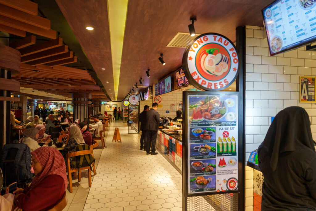 フードコートでは、現地人に混じって、マレーシアの日常食を体験することができます。