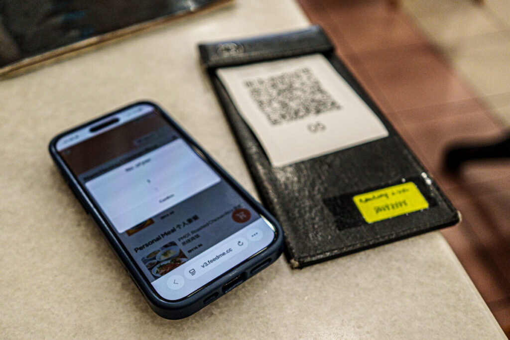 各テーブルには、QRコード伝票があります。これをスマホで読み取って、料理を注文します。言葉の壁に悩まされません。店員との会話はゼロです。