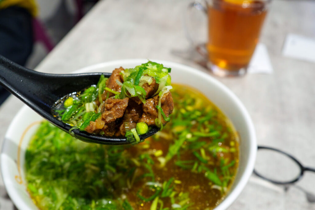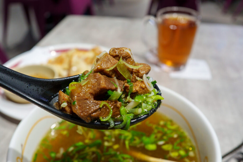 スープの中から、紅焼牛が無限に出てきます。ハンバーグ2つ分くらい入っているのでは、ないでしょうか?お店が繁盛するわけです。
