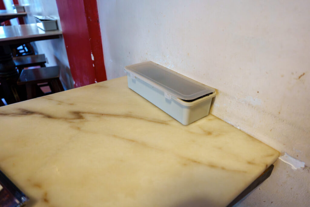 テーブル、カトラリーボックスは、衛生的でした。