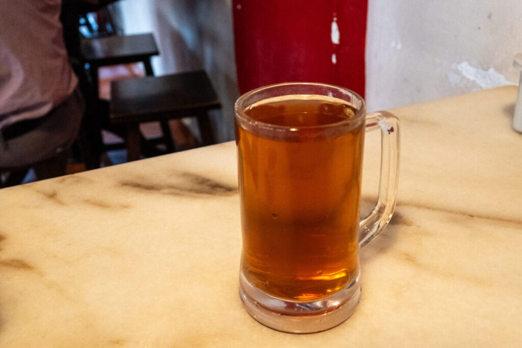 ビールジョッキサイズのグラスで提供されます。お茶の渋みが、味覚をリフレッシュしてくれます。