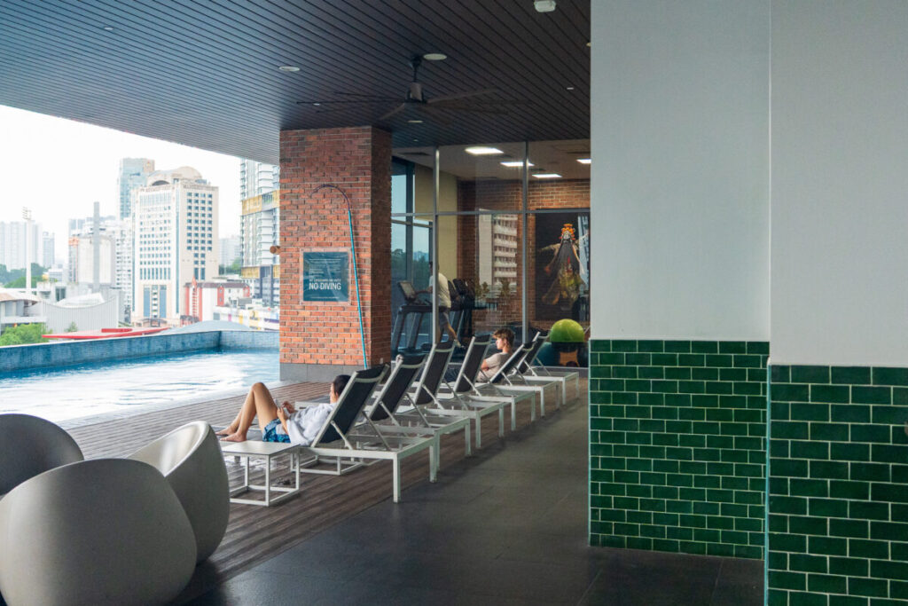プールやフィットネスジムがあり、欧米人が優雅な休日を過ごす光景がありました。