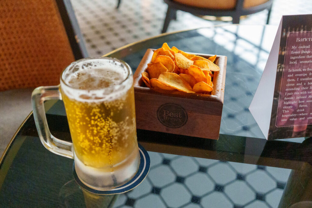 ビールを注文しました。2杯無料で飲むことができます。ポテトチップスも無料です。