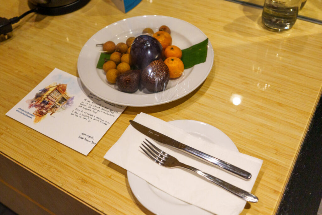客室に戻ると、呼び鈴がなり、フルーツを届けてくれました。