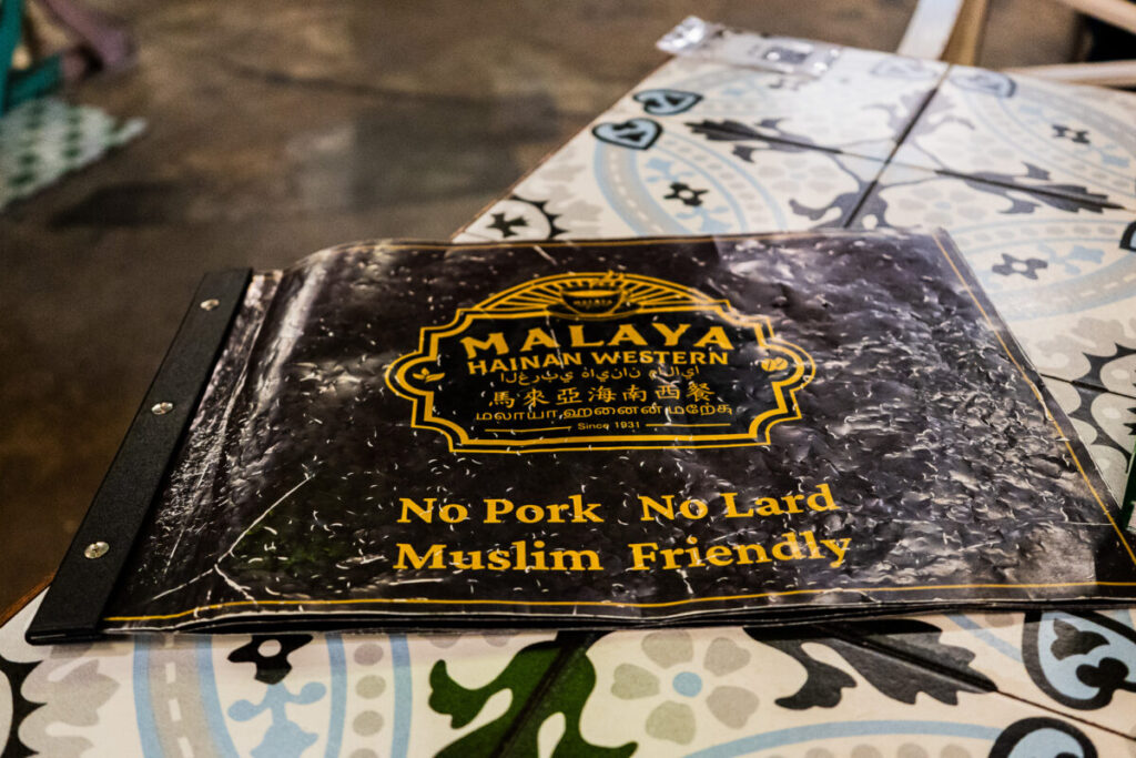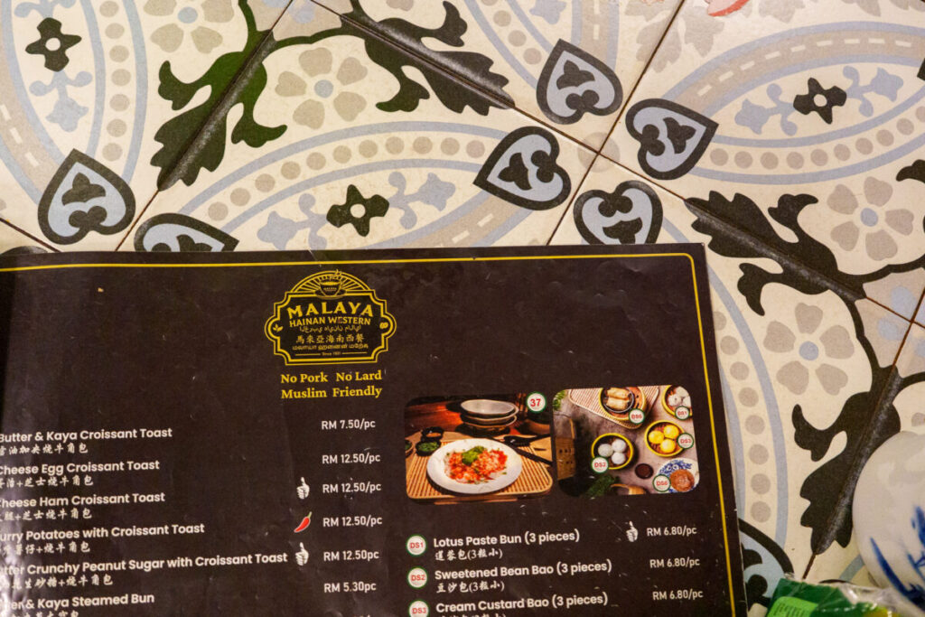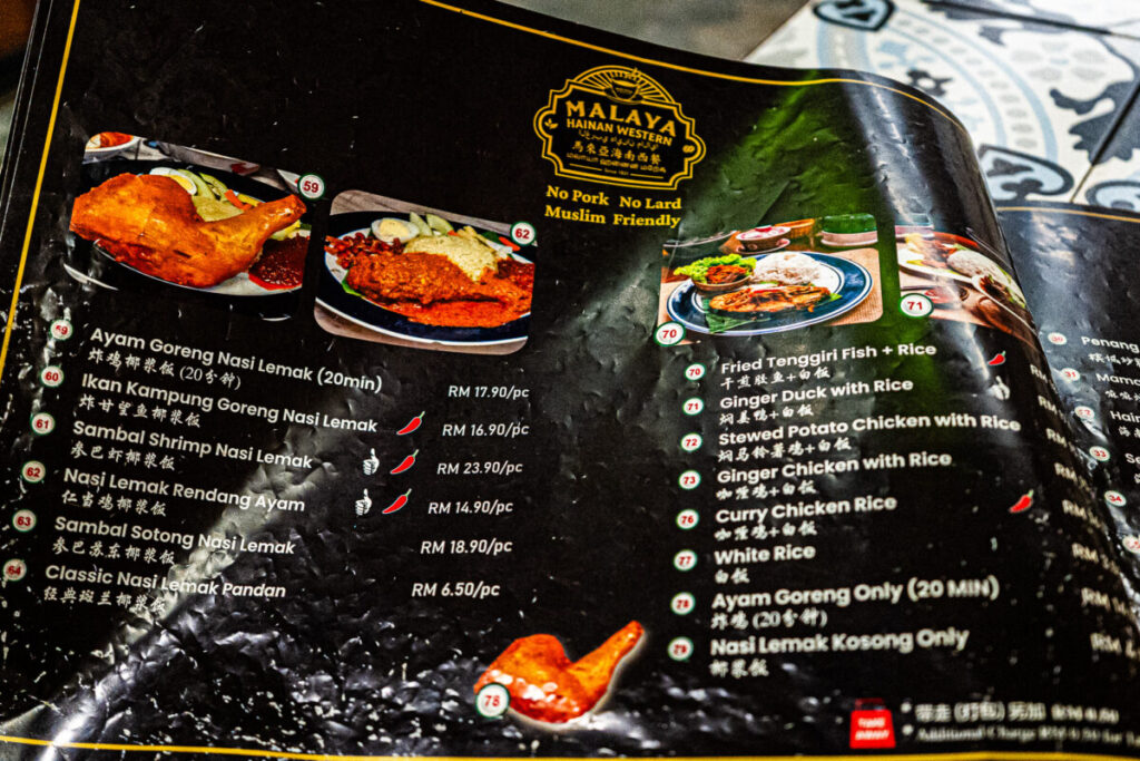Kafei Dian (Petaling Street KL)のメニューには、豚肉とラードが使われておりません。イスラム教の教えによるものです。