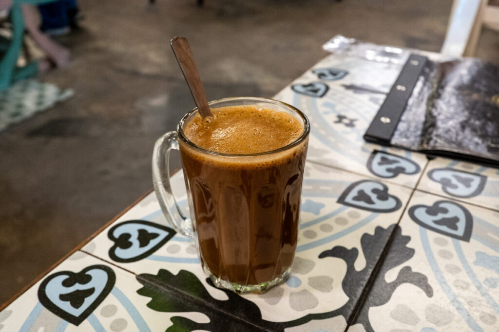 コーヒー豆をマーガリンで焙煎したご当地コーヒーです。濃いめに淹れられていますが、練乳と砂糖がたっぷり入っているので、苦味がなくまろやかに纏められています。